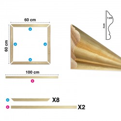 * 2 cadres de 60x60cm avec coupes à 45° déjà faites dans les angles donc prêt à poser et à peindre.